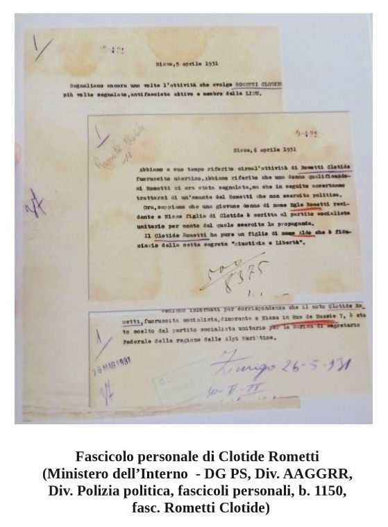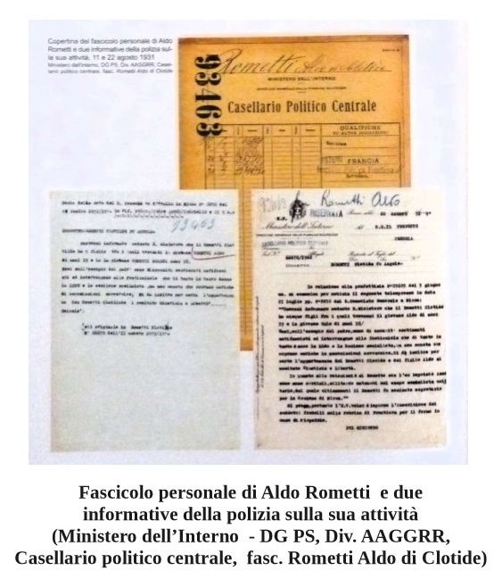 Qui di seguito, alcuni documenti relativi ad informative di pubblica sicurezza su alcuni membri della famiglia Rometti durante il periodo fascista conservati presso l’Archivio Centrale dello Stato e pubblicati in occasione della mostra “ROMETTI meraviglie della ceramica e storie familiari nelle carte dell’Archivio Centrale dello Stato” che si è svolta a Roma, presso la sede dell’Archivio, dal 24 ottobre al 24 novembre 2007.
